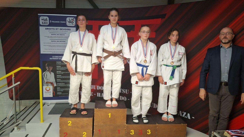 Carton plein pour nos 2 cadettes féminines qui se qualifient aux championnat de France. En renfort dans 2 équipes différentes, nos combattantes guichenaise se classent 1ere (Lou) et 2e (Assa).